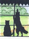 This is a commission. It is of the person's 2 cats staring out the window in a silhouette setting. |